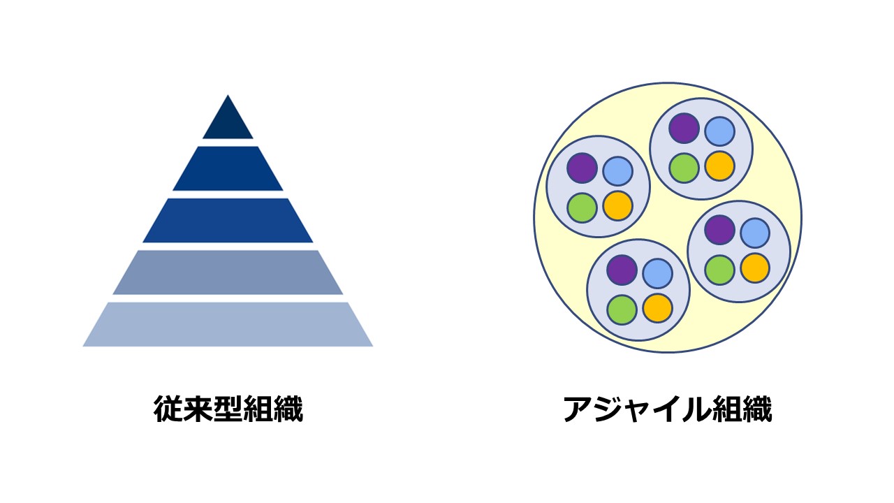 左側が従来組織の構造、右側がアジャイル型組織の構造です。