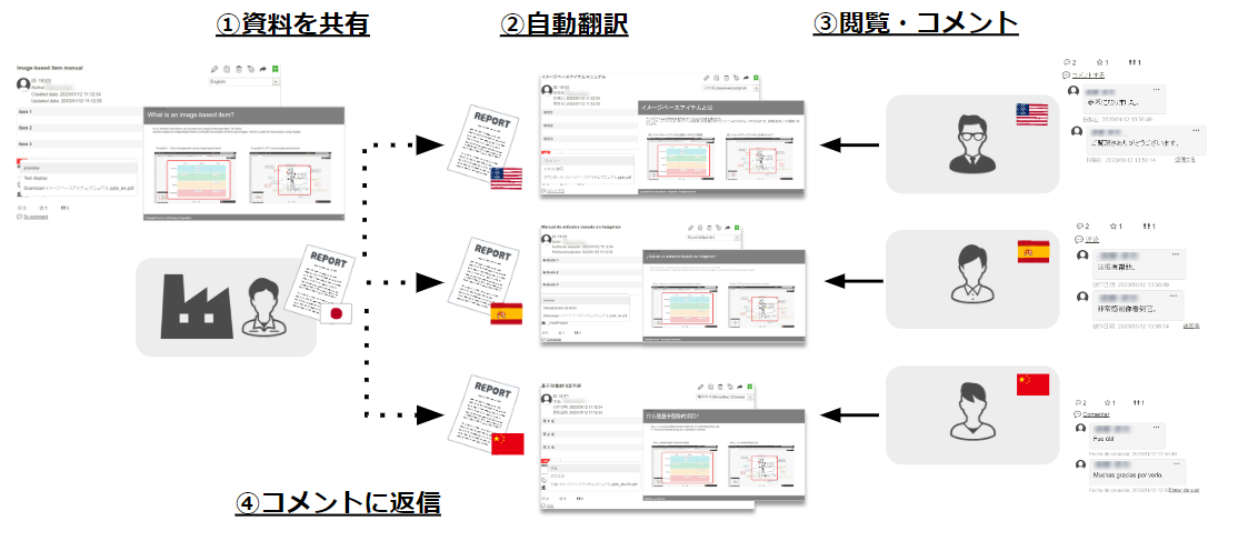 - 拠点ごとの主言語で資料を閲覧し、質問などをコメント